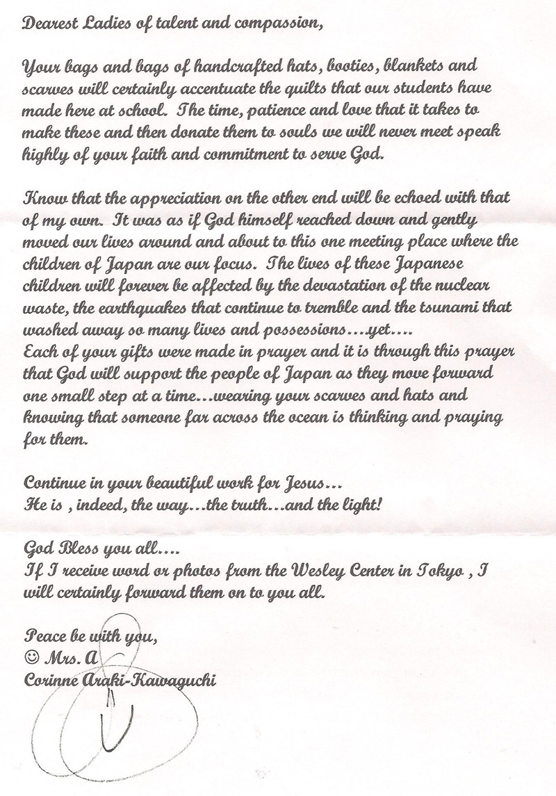 In the winter of 2005, a group of women came together with the object in mind to learn how to knit. Within a months time Our Lord placed it on our hearts to create a ministry with our new found talent and reach through out the world by knitting hats and scarves to help keep warm the many poor and needy.